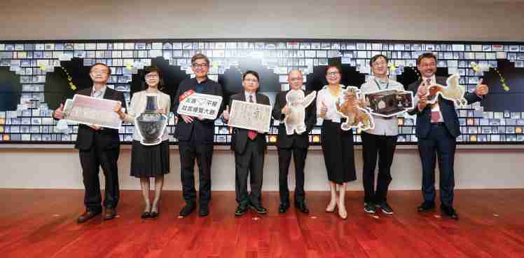 口袋牛店携手创利空间为故宫建置的智慧文物互动导览墙及轮播墙,,,,今日正式启用。。。。(左四:口袋牛店新事业暨投资管理总部副总经理杨本豫、、右四:故宫博物院院长吴密察、、右三:太极影音董事长黄宝云)